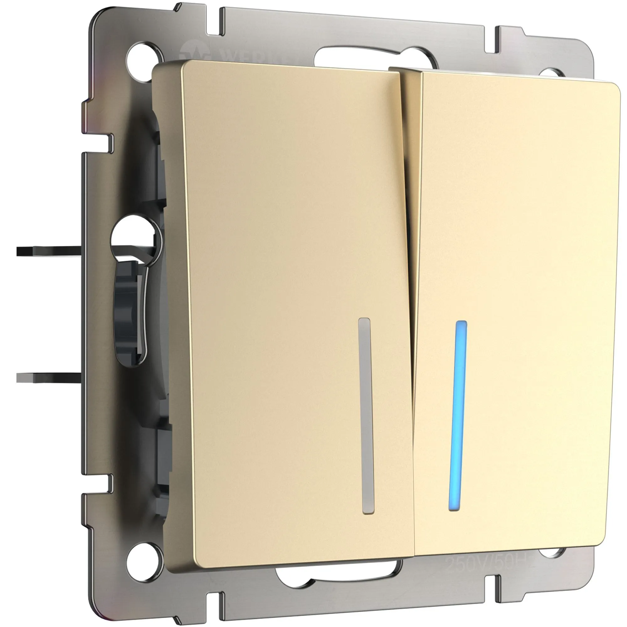 Выключатель двухклавишный проходной с подсветкой Werkel шампань металик — управление светом из двух точек + комфорт в темноте