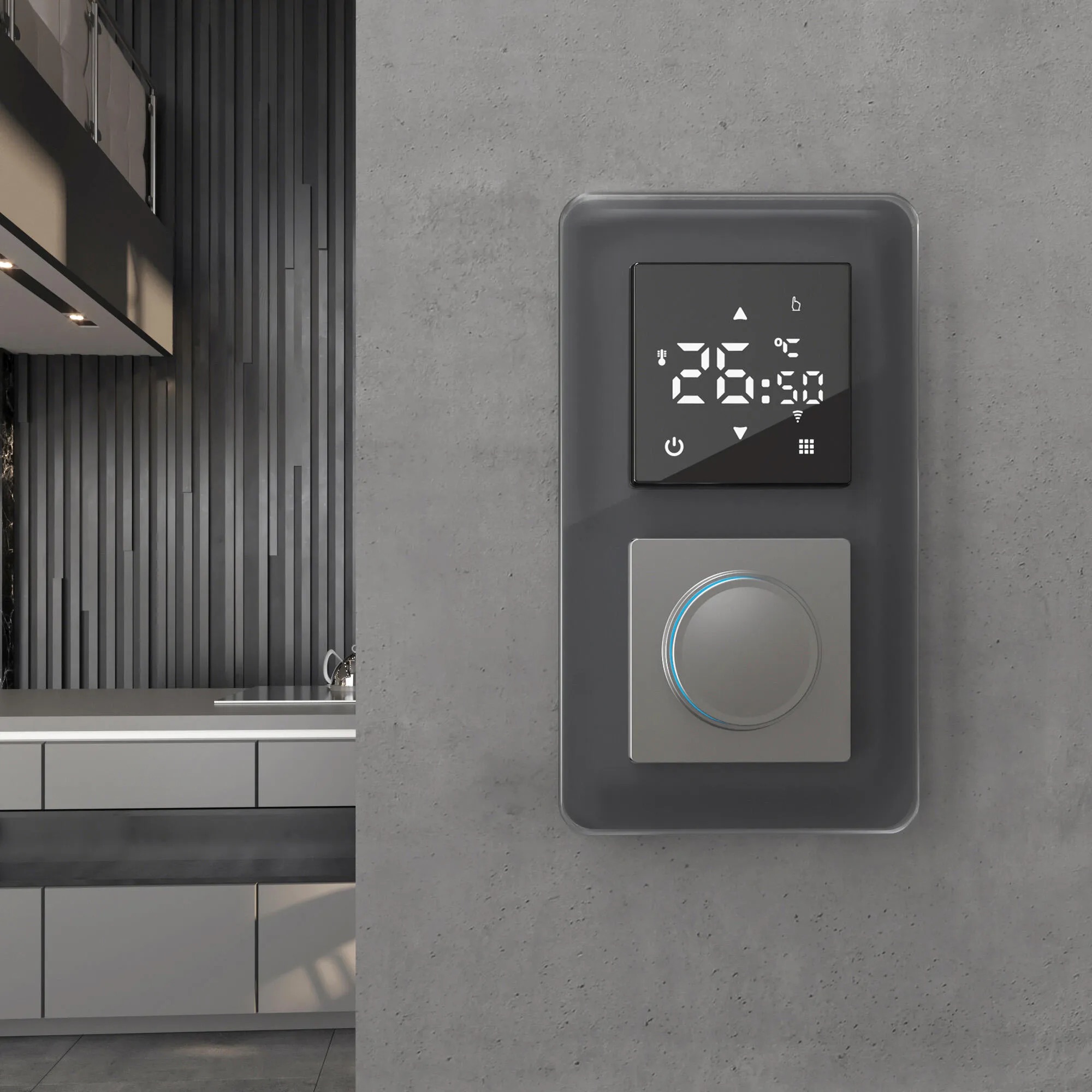 • Сенсорный терморегулятор Werkel — управление климатом через гладкий экран без кнопок .